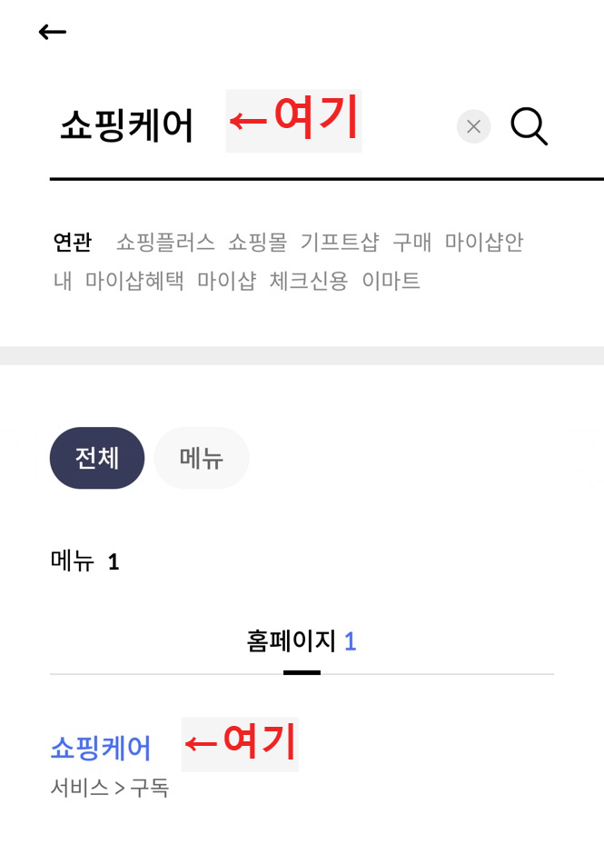 2. 검색에 '쇼핑케어' 검색