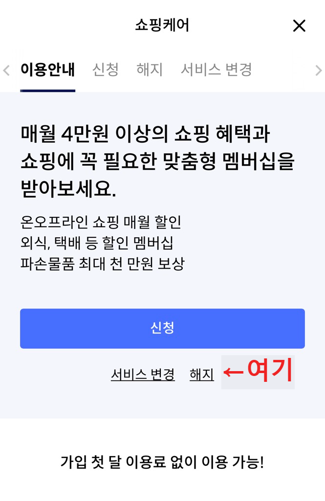 신한카드 쇼핑케어 해지방법